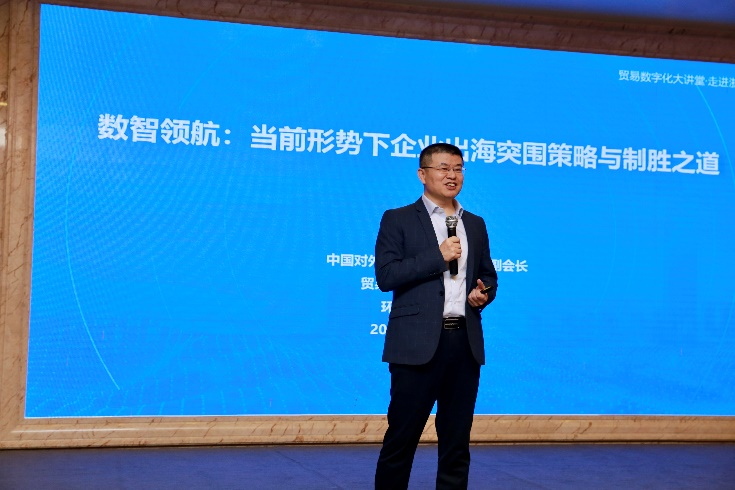 貿易數字化專業委員會主任邵宏華以《數智領航:當前形勢下企業出海突圍策略與制勝之道》為題作了精彩的主旨演講。他結合百年未有之大變局形勢、新周期下商業邏輯重構及新趨勢新紅利、全球化國際貿易演變、產業大轉移以及全球供應鏈重構等,分別從中國外貿結構新趨勢及發展新特征、企業出海新機遇與新挑戰、外貿大數據價值、人工智能在國際貿易中的應用、大數據精準營銷及戰術戰略、數智化營銷新范式及出海人才培養等幾大維度進行了系統而深入的闡述。邵宏華強調,隨著新一輪科技革命和產業變革深入發展,新全球化呈現出數字化、智能化、綠色化等鮮明特征,全球貿易規則、市場形態、競爭方式均在發生深刻變化。在此背景下,企業走出去面臨的挑戰與機遇并存,對數智化能力的掌握與應用將成為決定出海成敗的關鍵變量。單純依靠傳統貿易模式已難以為繼,企業必須擁抱數字化轉型,充分利用大數據、人工智能等先進技術提升市場洞察力、營銷精準度和運營效率,方能于變局中開新局,找到屬于自身的制勝之道。