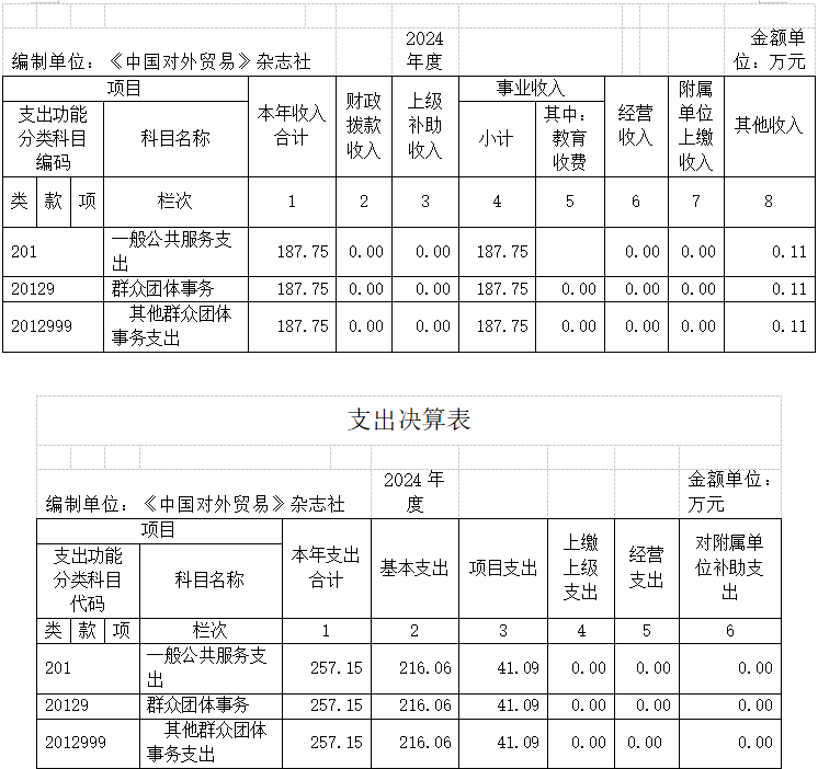 《中國對外貿(mào)易》雜志社2024年度 部門決算公示