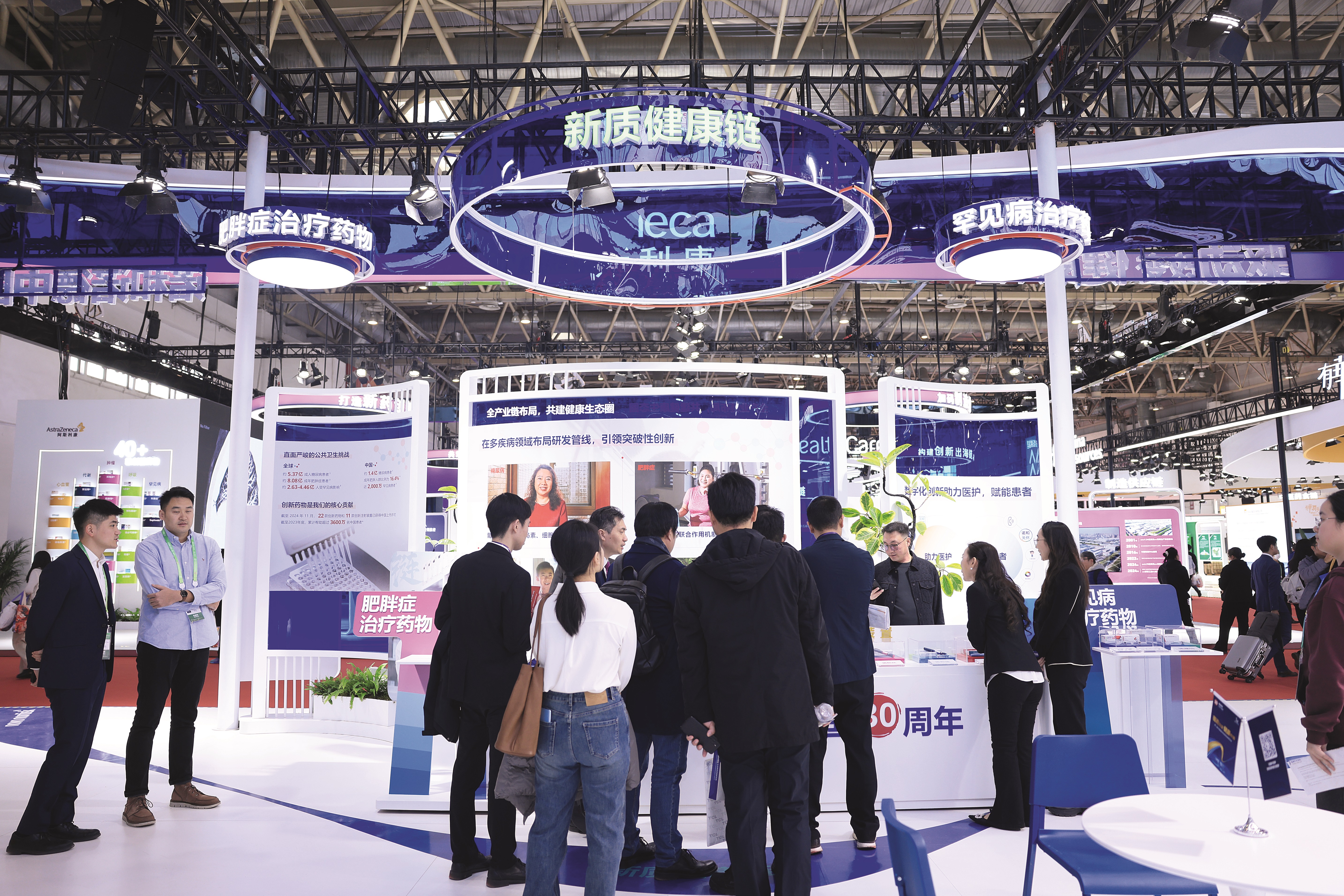 醫療健康板塊展示醫藥技術、健康管理、體外檢測、基因篩查、遠程醫療等,展現全方位全生命周期醫療健康服務體系。